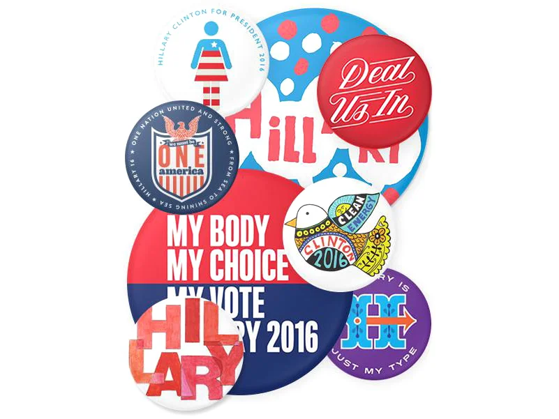 To help tell Hillary's story, Hillary for America invited 45 artists and graphic designers to create button designs that embody why they support Hillary.