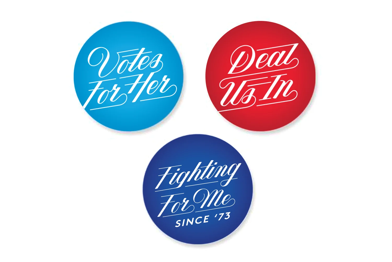 Lettering design and copy created for three 1" buttons for Hillary for America in New York, NY.