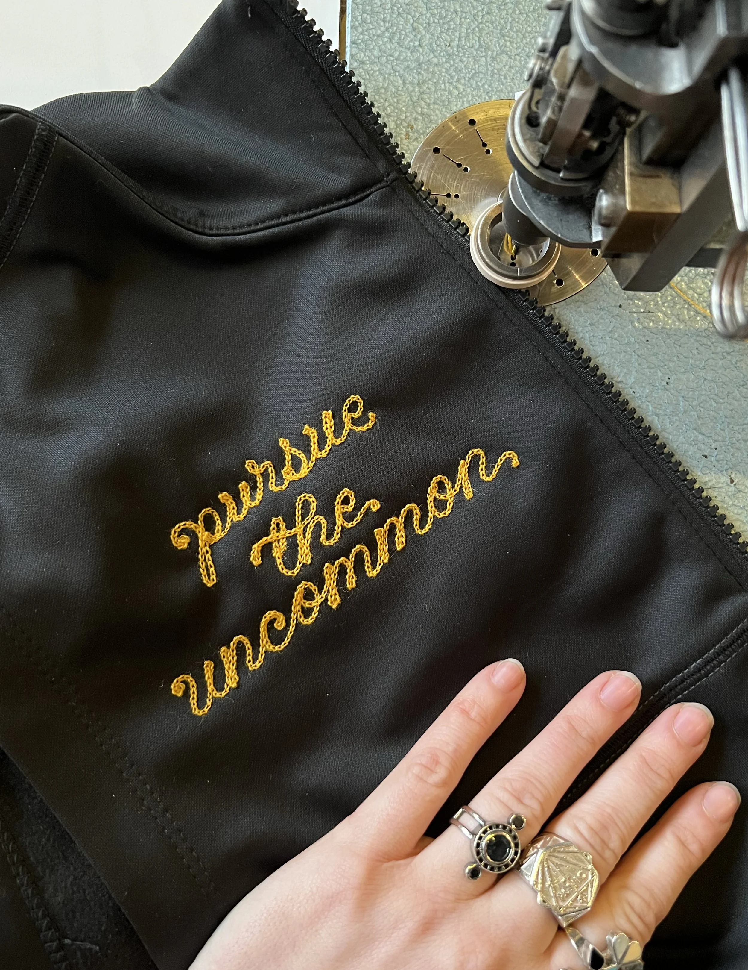 Vichcraft is available for live chainstitch events, as well as custom commissions using a 120-year-old, hand-cranked embroidery machine.