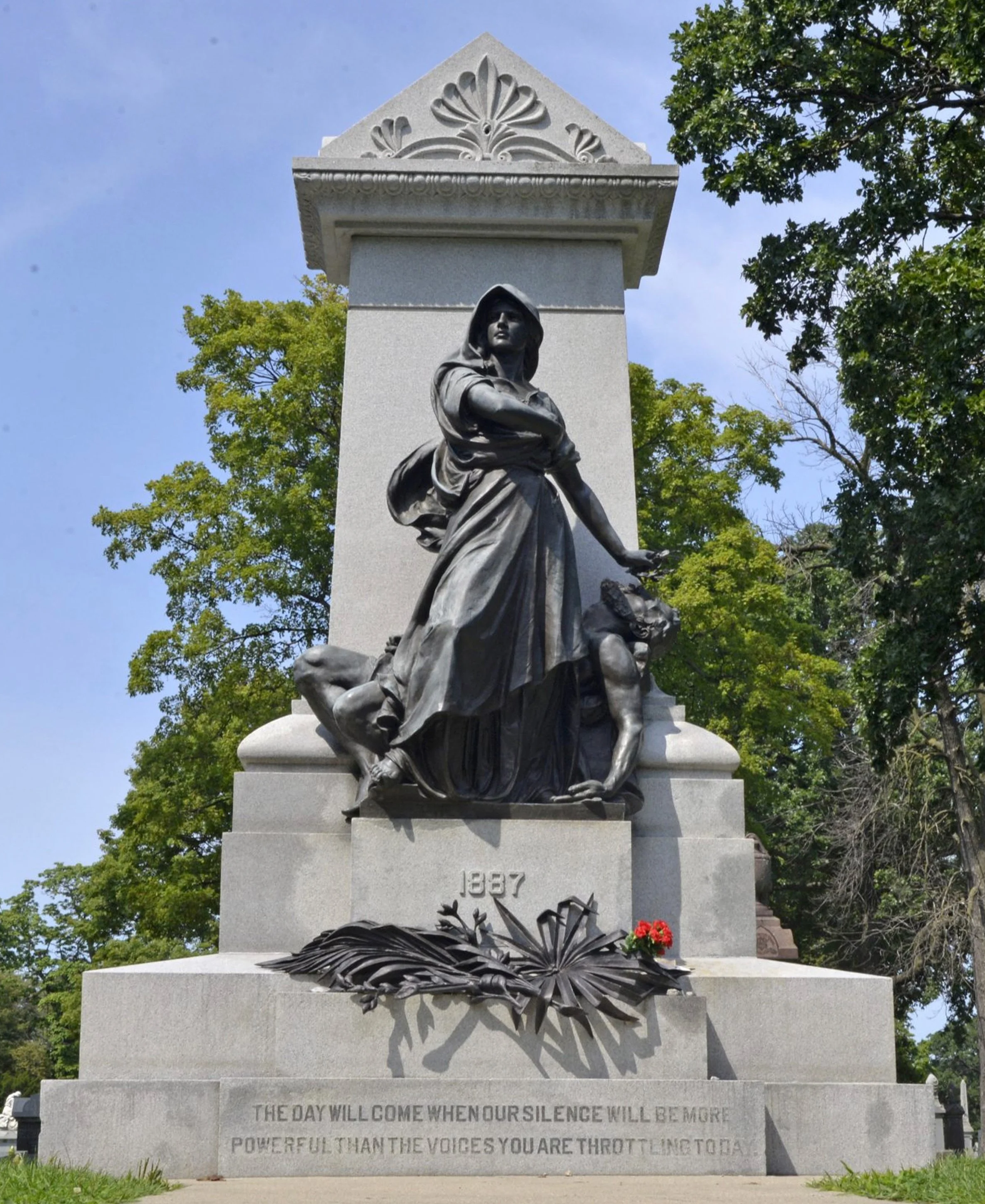 The Haymarket Martyrs' Monument located at Forest Home Cemetery in Forest Park, Illinois, a suburb of Chicago.